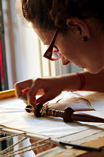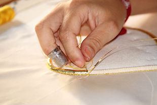 Rocío Sosa se dedica al arte del bordado desde hace 12 años. Empezó en los talleres de los Sucesores de Esperanza Elena Caro, siguiendo en dicho taller actualmente desempeñando tan preciada labor.